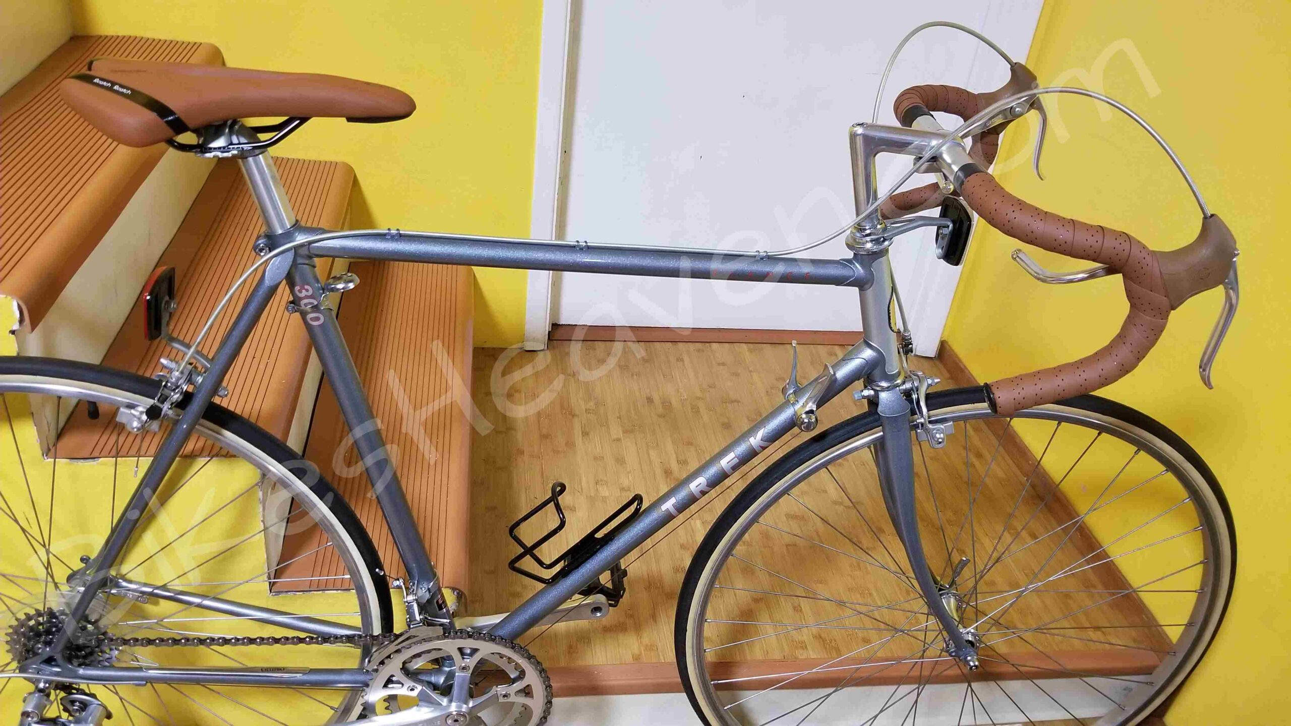 This is a surprisingly well-made bike with quality components that was not ridden much and was always kept indoors. It is in immaculate condition, not a scratch. Nevertheless, I completely disassembled this bike and overhauled every component. This bike’s frame was built in Japan from Ishiwata triple-butted chrome-molybdenum alloy.