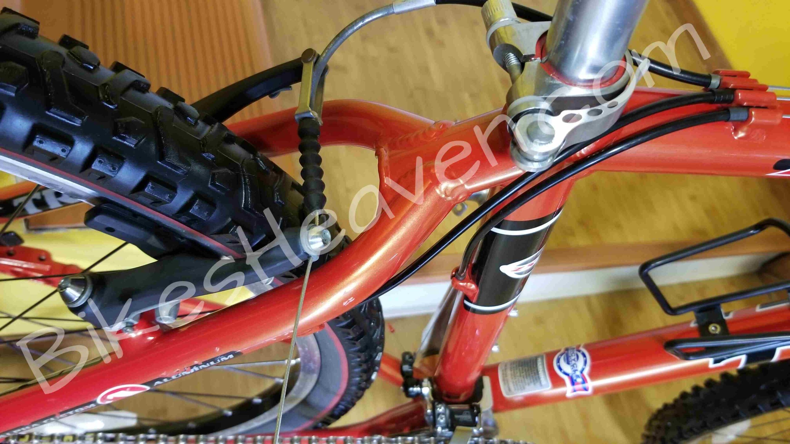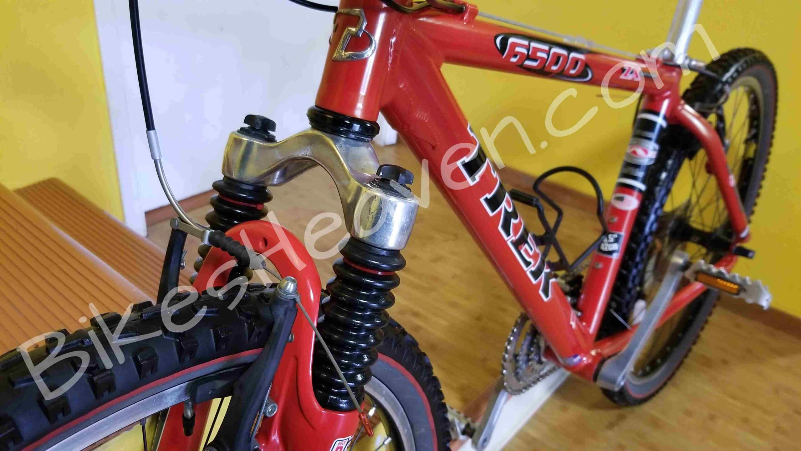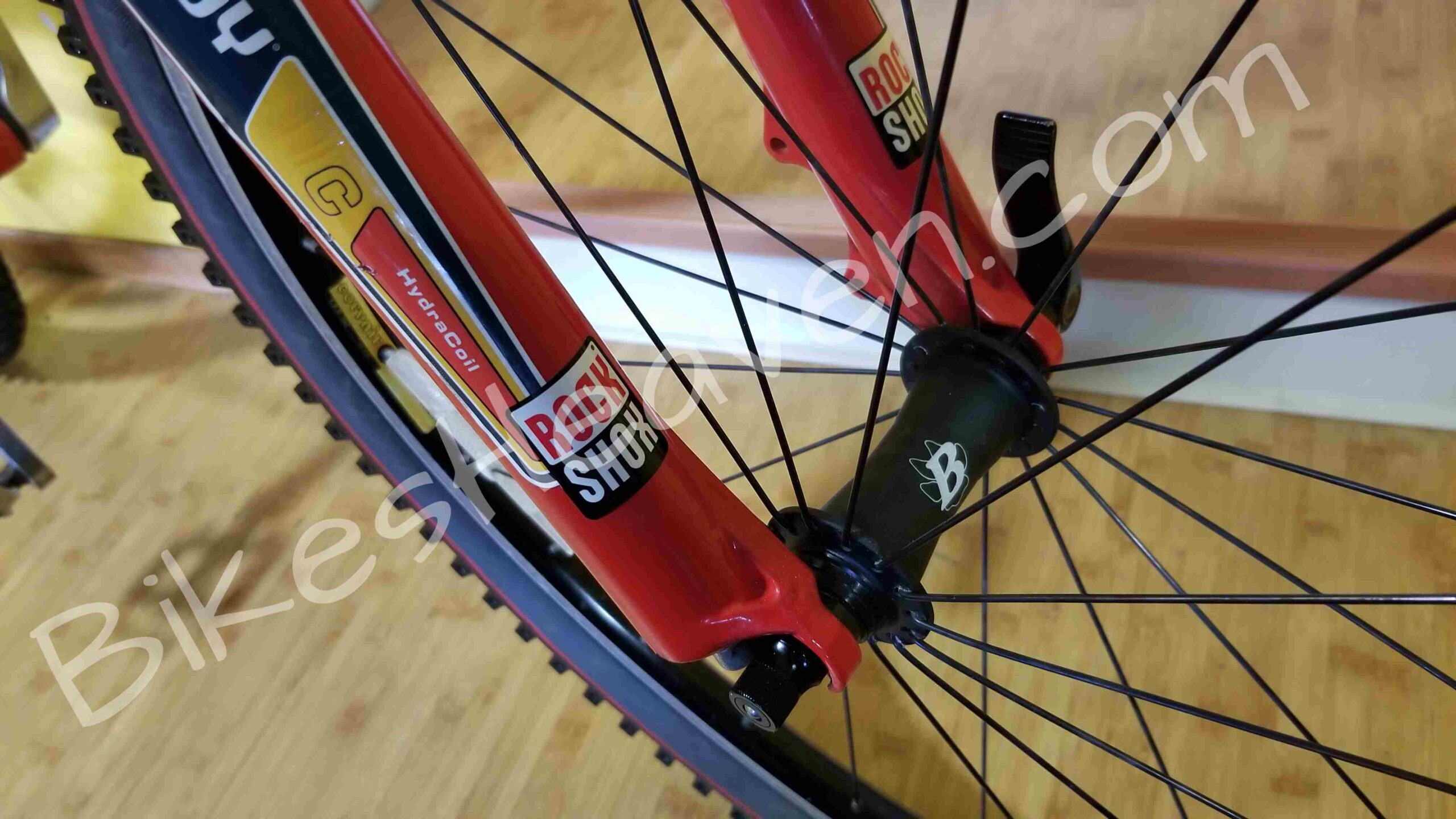- Wheels: 26″ Bontrager Comp, Bontrager Corvair rims, DT stainless spokes 1.8mm straight gauge, brass nipples