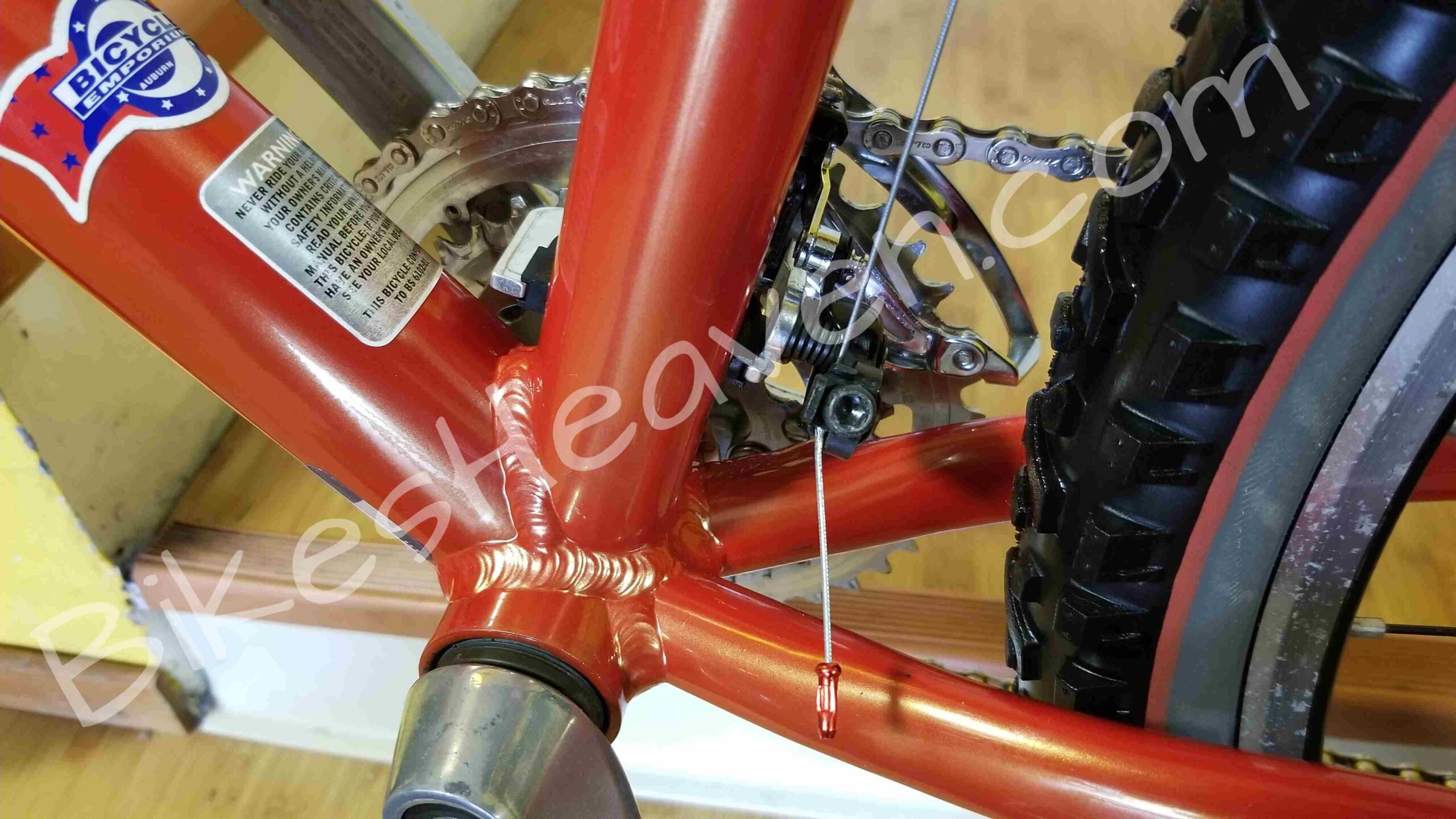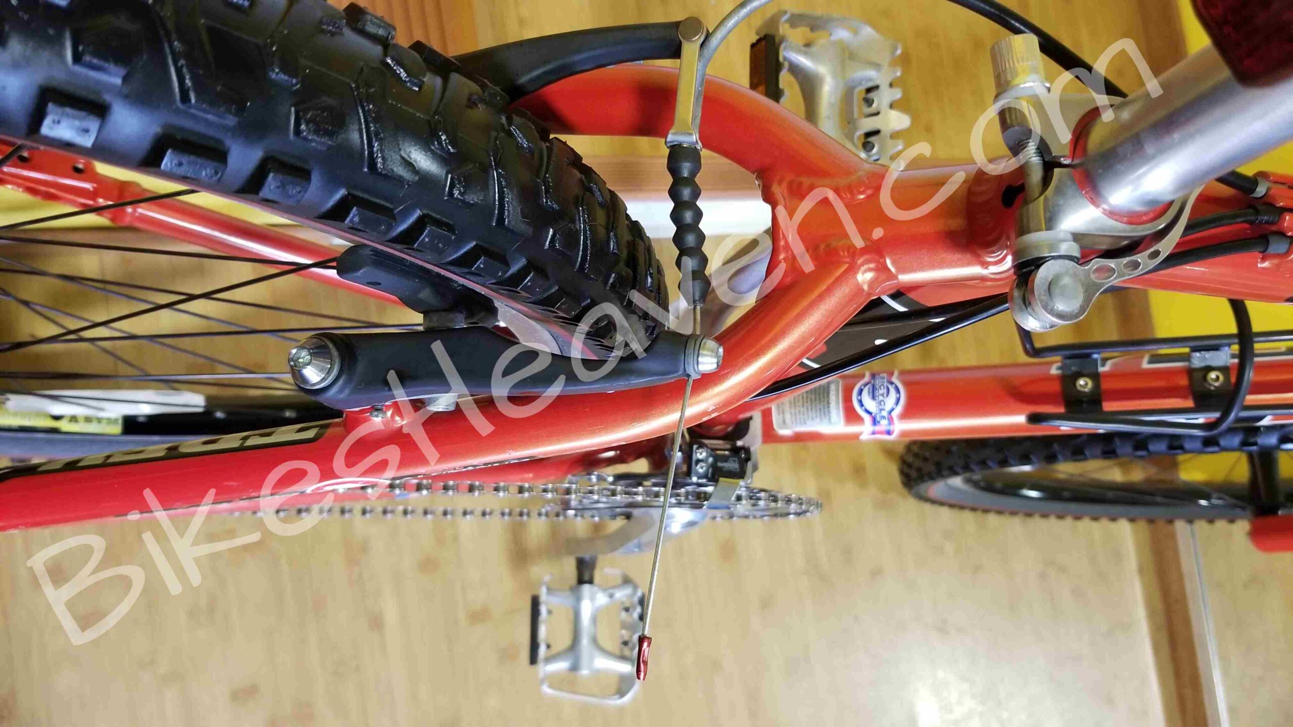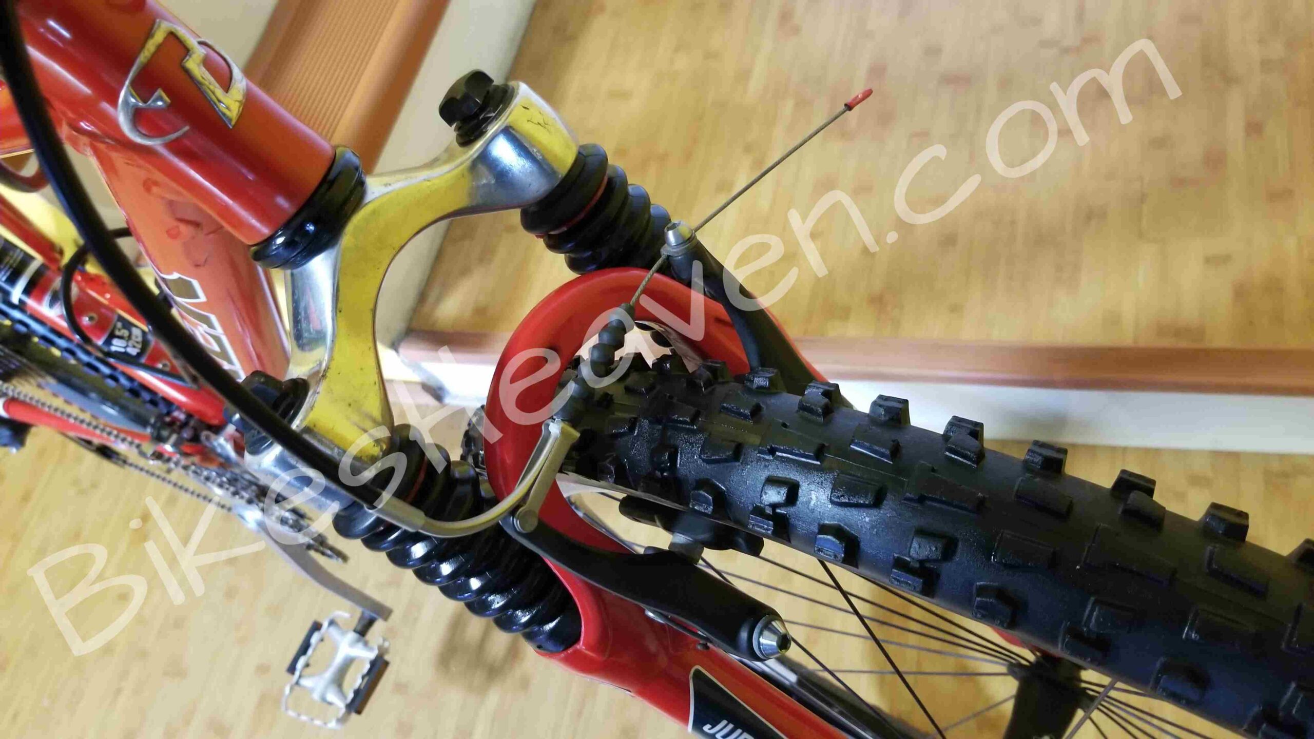 - Wheels: 26″ Bontrager Comp, Bontrager Corvair rims, DT stainless spokes 1.8mm straight gauge, brass nipples