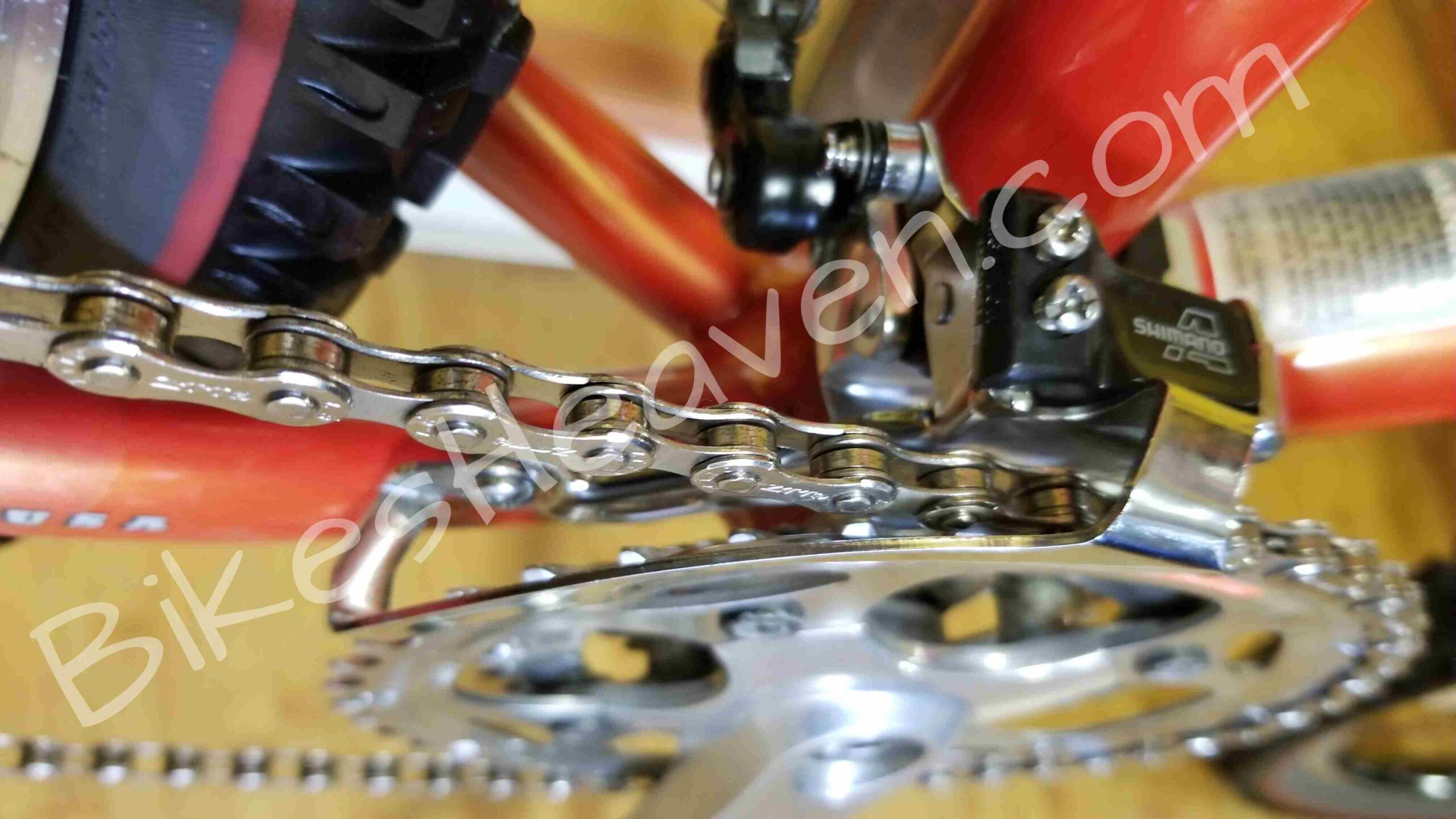 - Chain: Shimano CN-HG50, 1/2 x 3/32″