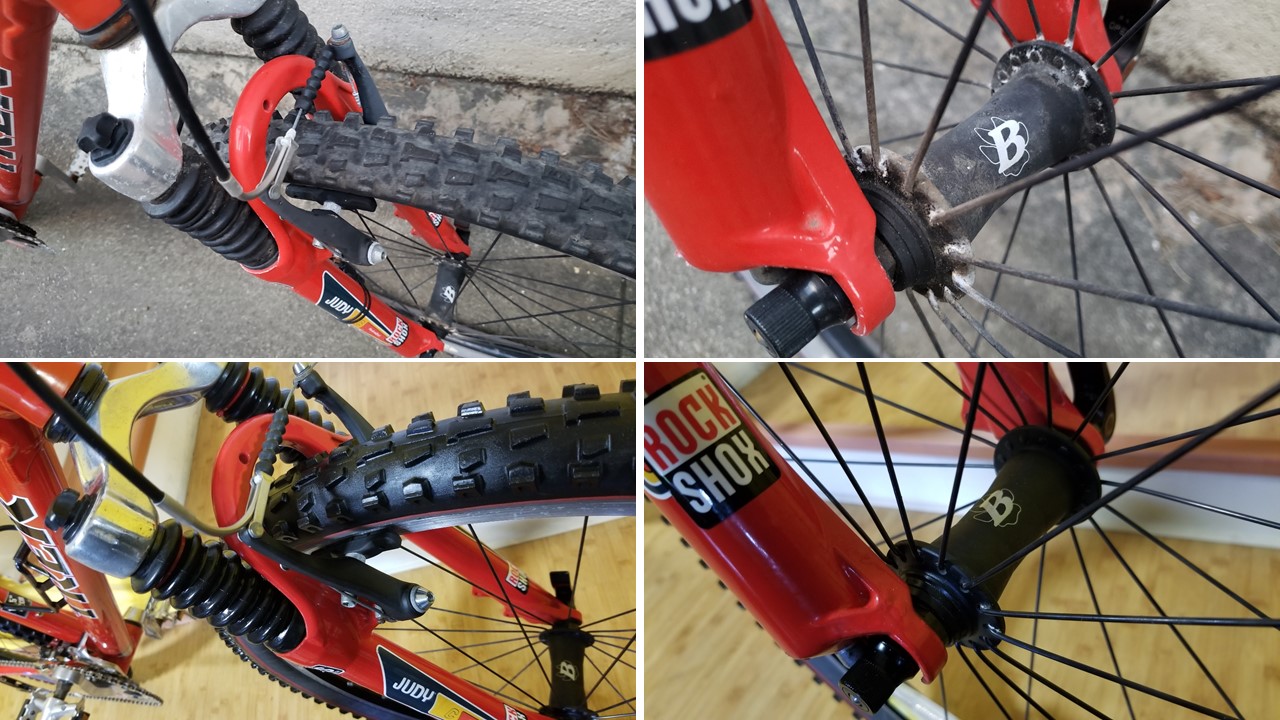 - Fork: Rock Shox Judy C, Aluminum/magnesium, triple-clamp crown, 3.15″ travel