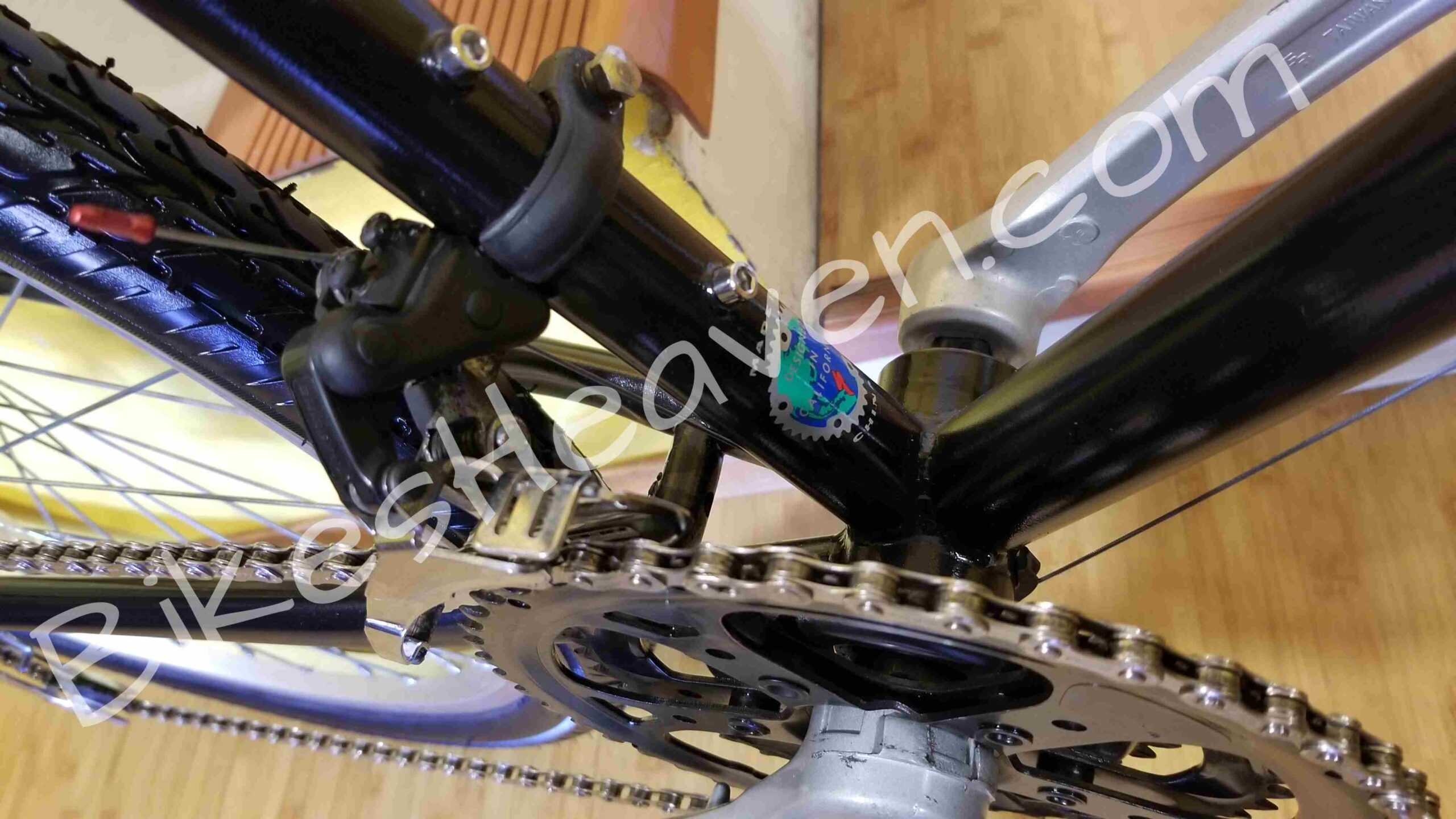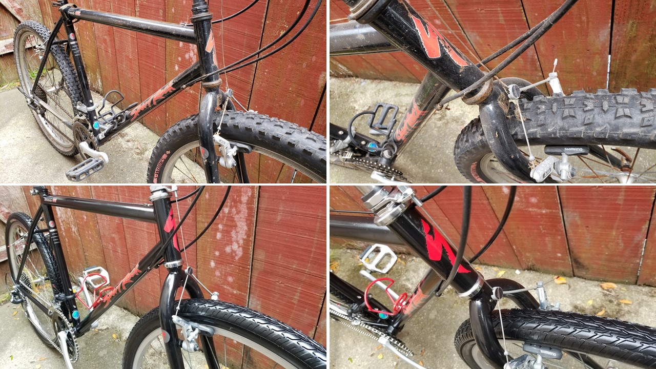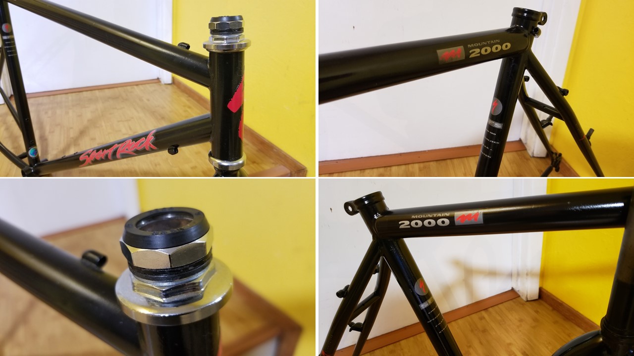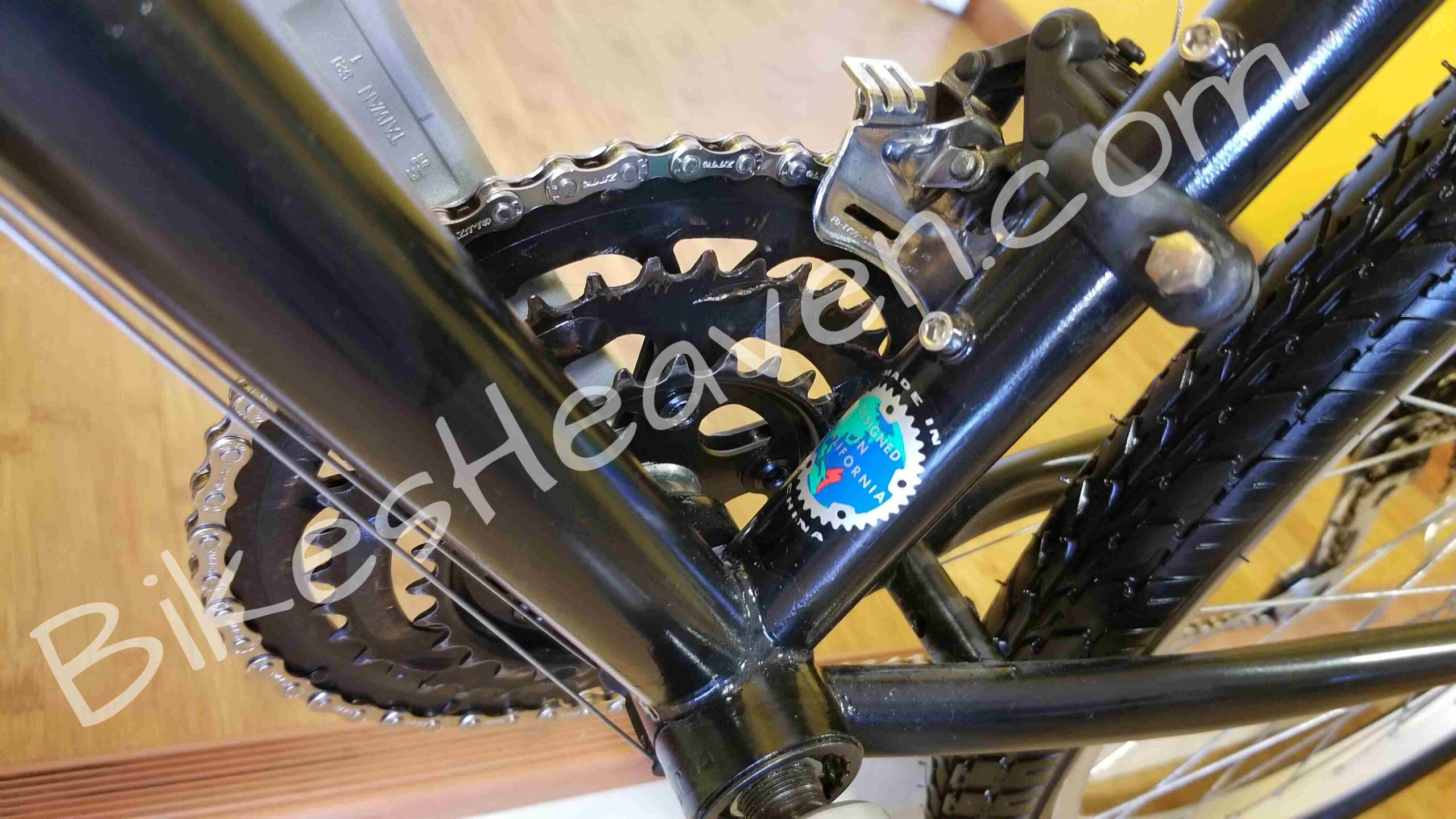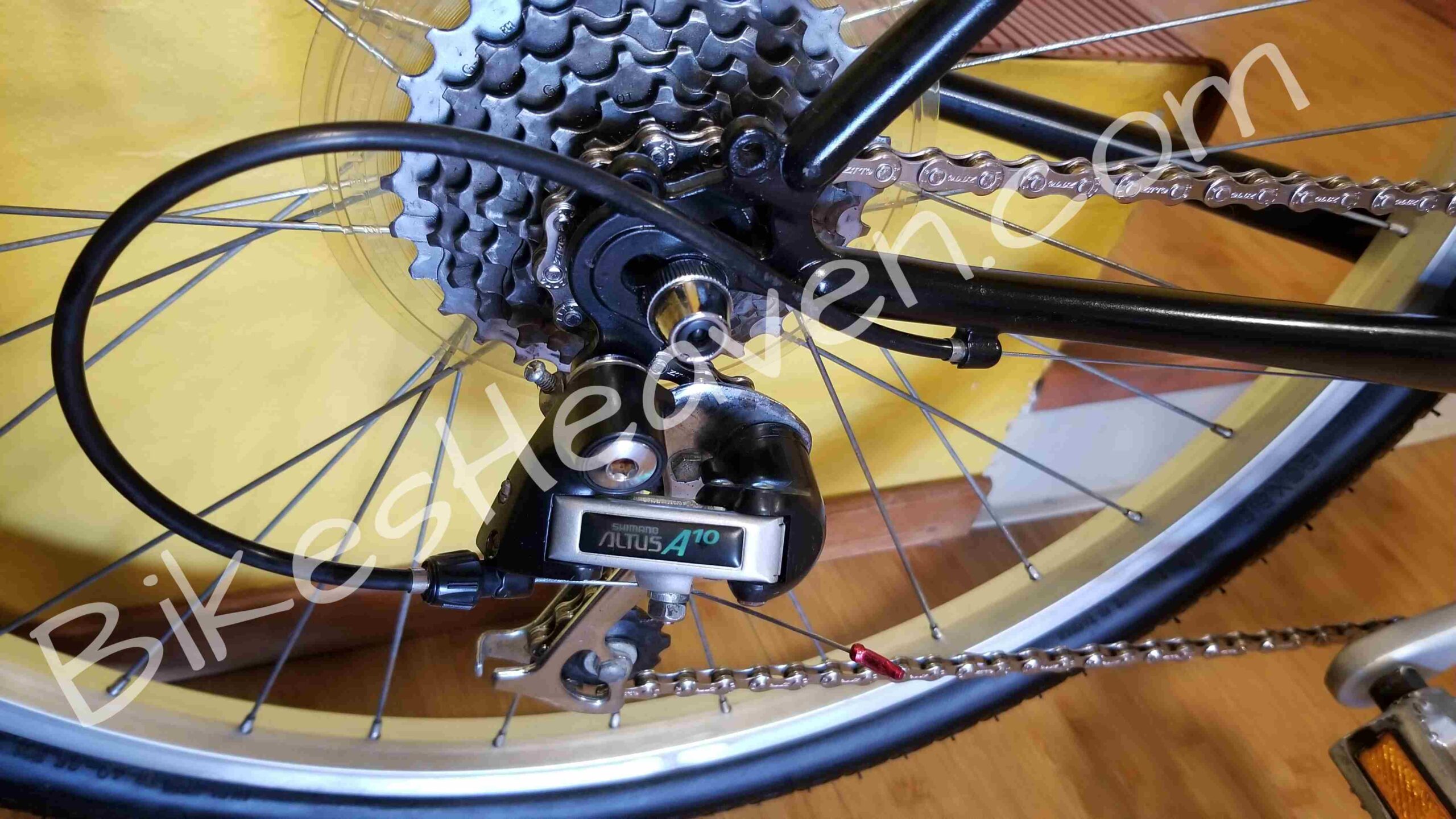 This bike has a 20.5″ ChroMoly steel frame, best for 6.0″-6’7″ riders. I am not sure whether my bike has all its original components. I replaced the badly rusted steel stem, headset, and handlebars with new ones, made from alloy, and kept the sturdy Araya mountain wheels with a 21-speed Shimano drivetrain. The old-school original shifters are replaced with a new Shimano shifters/brake levers combo. A completely rusted, low-end Shimano SIS derailleur is replaced with a new Shimano Altus A10 derailleur from the late 90s.