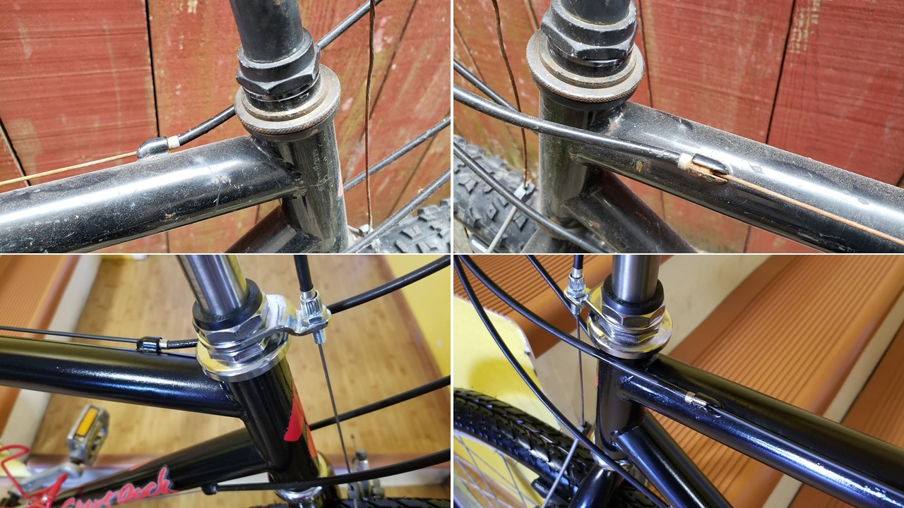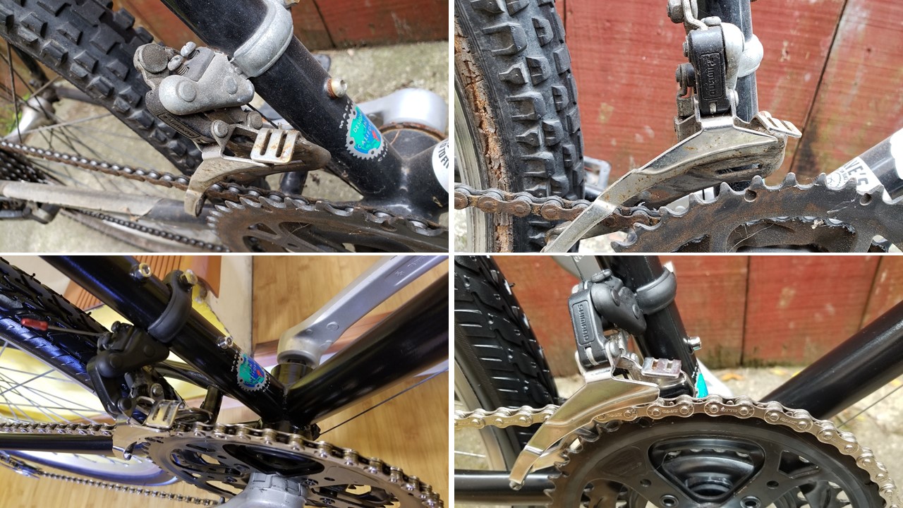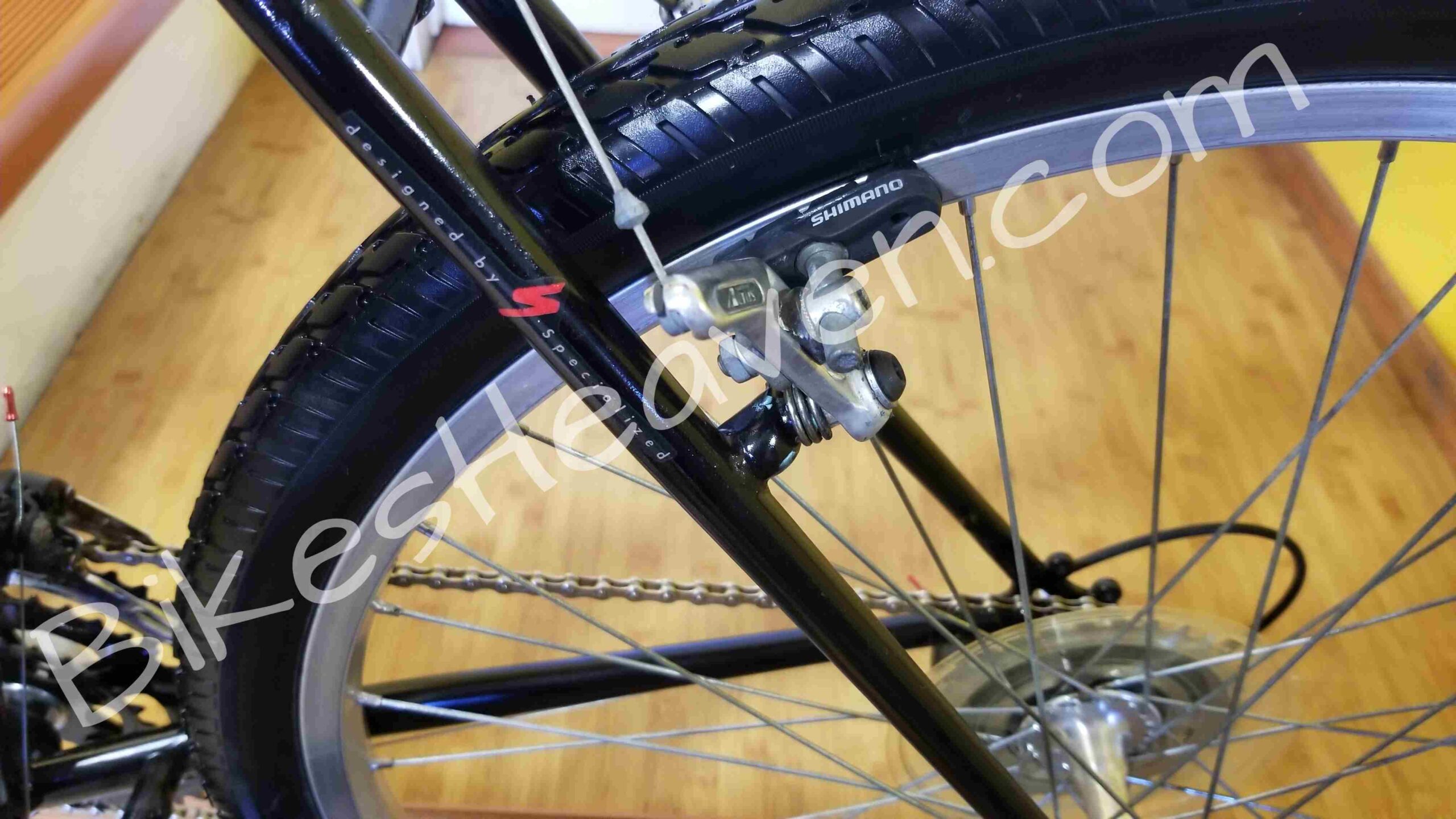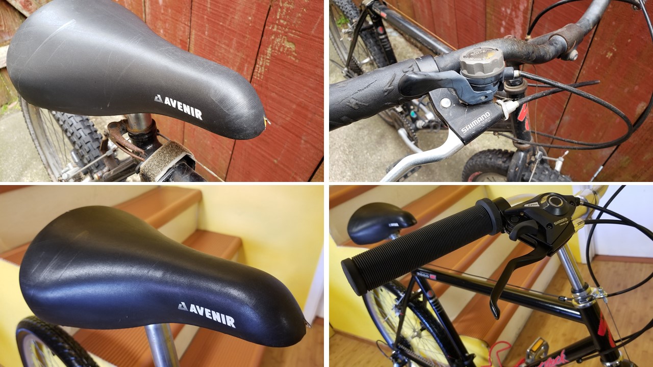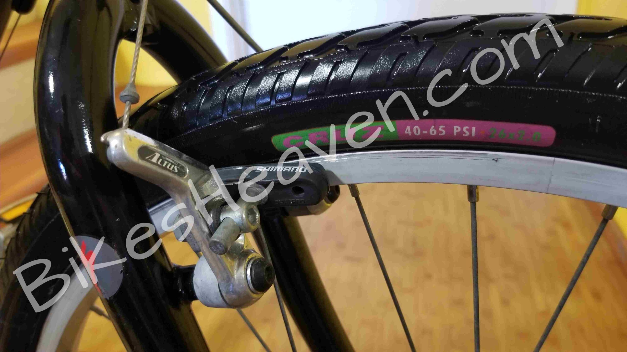 This bike has a 20.5″ ChroMoly steel frame, best for 6.0″-6’7″ riders. I am not sure whether my bike has all its original components. I replaced the badly rusted steel stem, headset, and handlebars with new ones, made from alloy, and kept the sturdy Araya mountain wheels with a 21-speed Shimano drivetrain. The old-school original shifters are replaced with a new Shimano shifters/brake levers combo. A completely rusted, low-end Shimano SIS derailleur is replaced with a new Shimano Altus A10 derailleur from the late 90s.