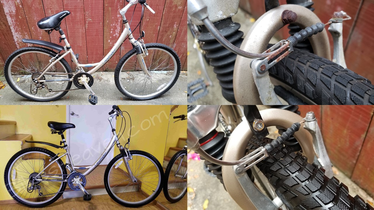 This bike is a super comfortable urban cruiser with a relaxed geometry, low entry frame, front shocks, and a suspended seatpost. It is still a very capable bike with a 14-speed drivetrain and sturdy 26″ wheels that will do well on and off roads. MSRP: $600. For more information, refer to the original owner’s manual.