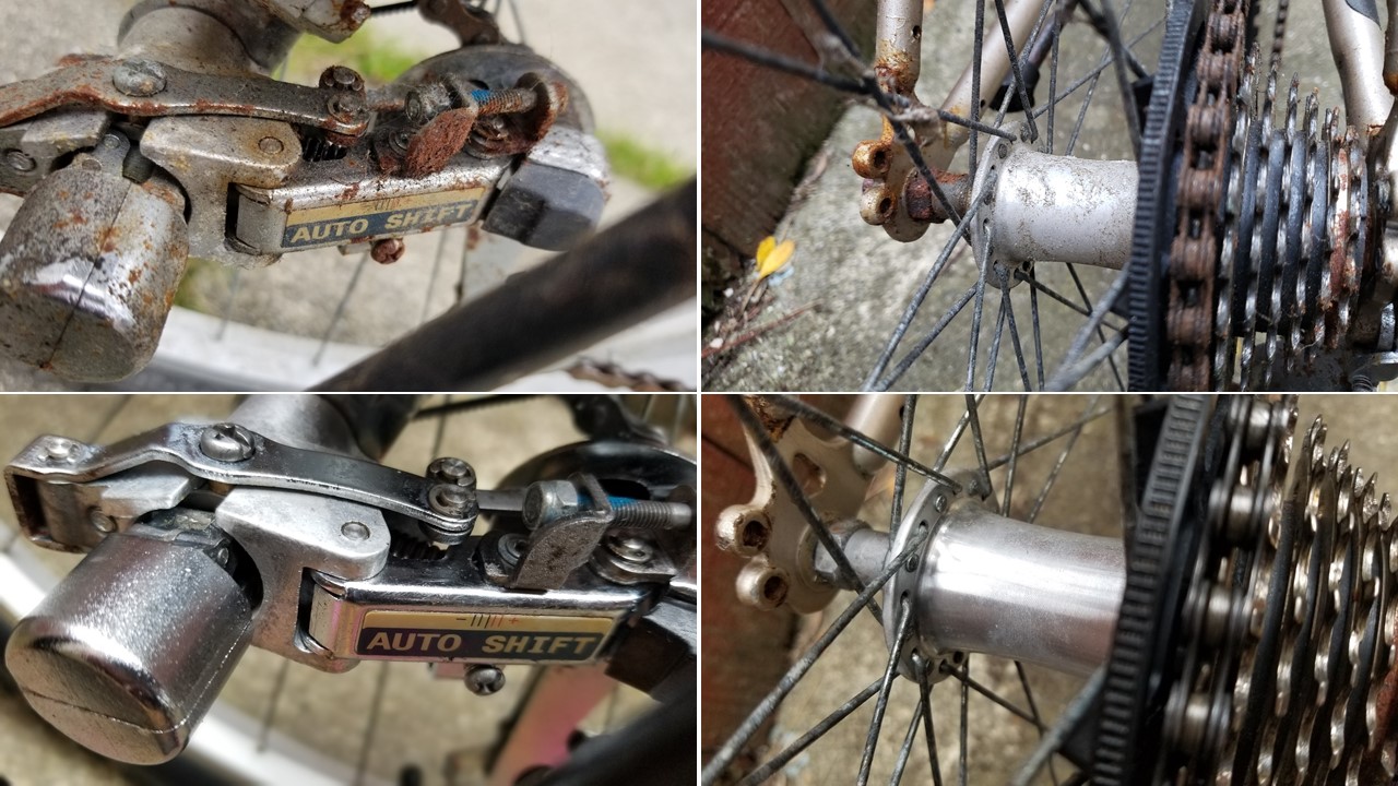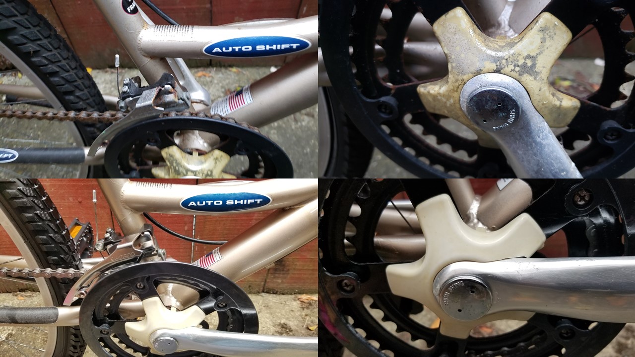 This LandRider bike was made by Venture Cycles between 2000 and 2002. Its key feature is an Auto-Shift rear derailleur that automatically shifts gears when the pedal rotation speed changes. Take a look at this bike’s derailleur in action. Here it is explained on one of my favorite YouTube channels.