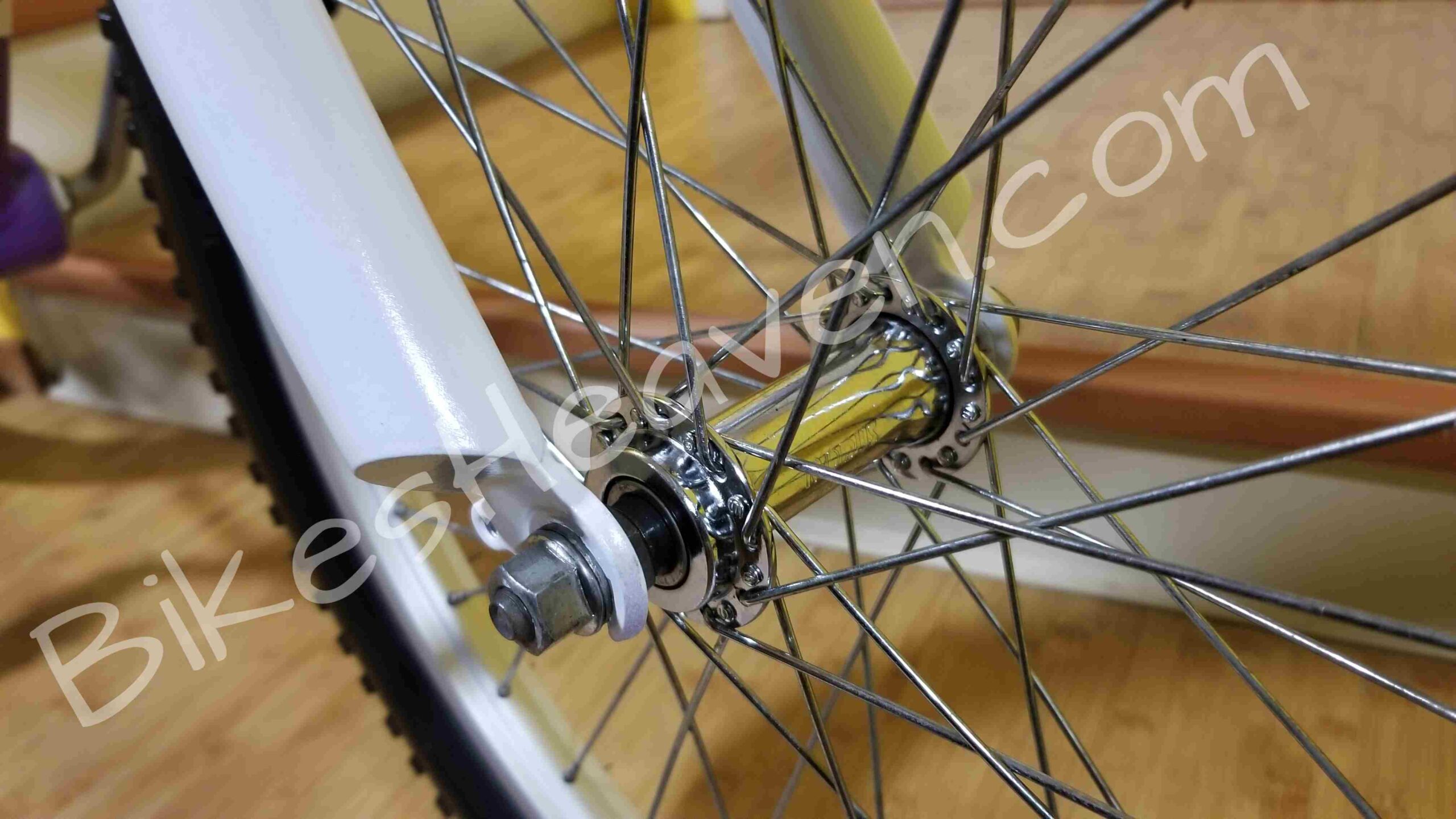 - Wheels: 20″ diameter, Joy Tech steel nutted, 36-hole alloy rims, stainless 14ga (2mm) spokes, brass nipples