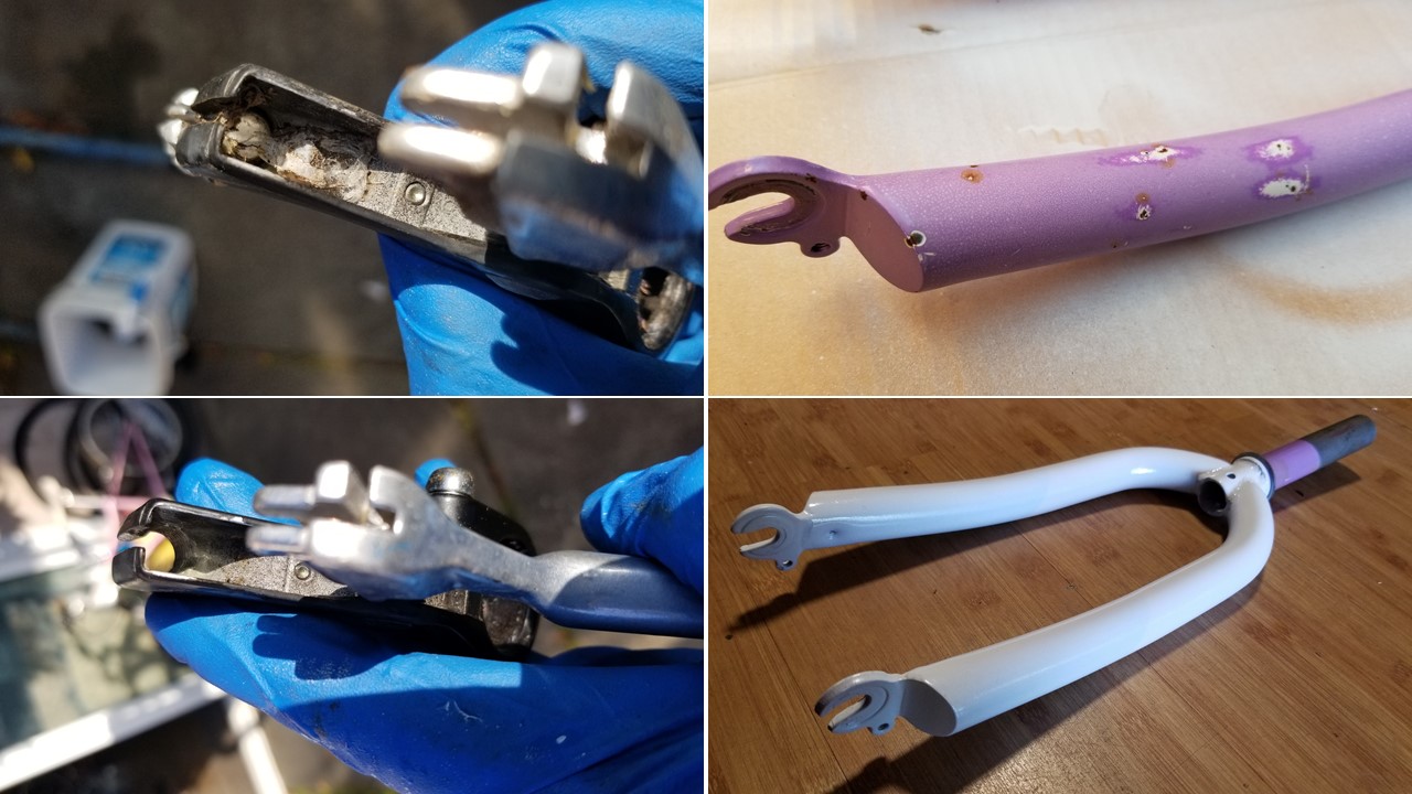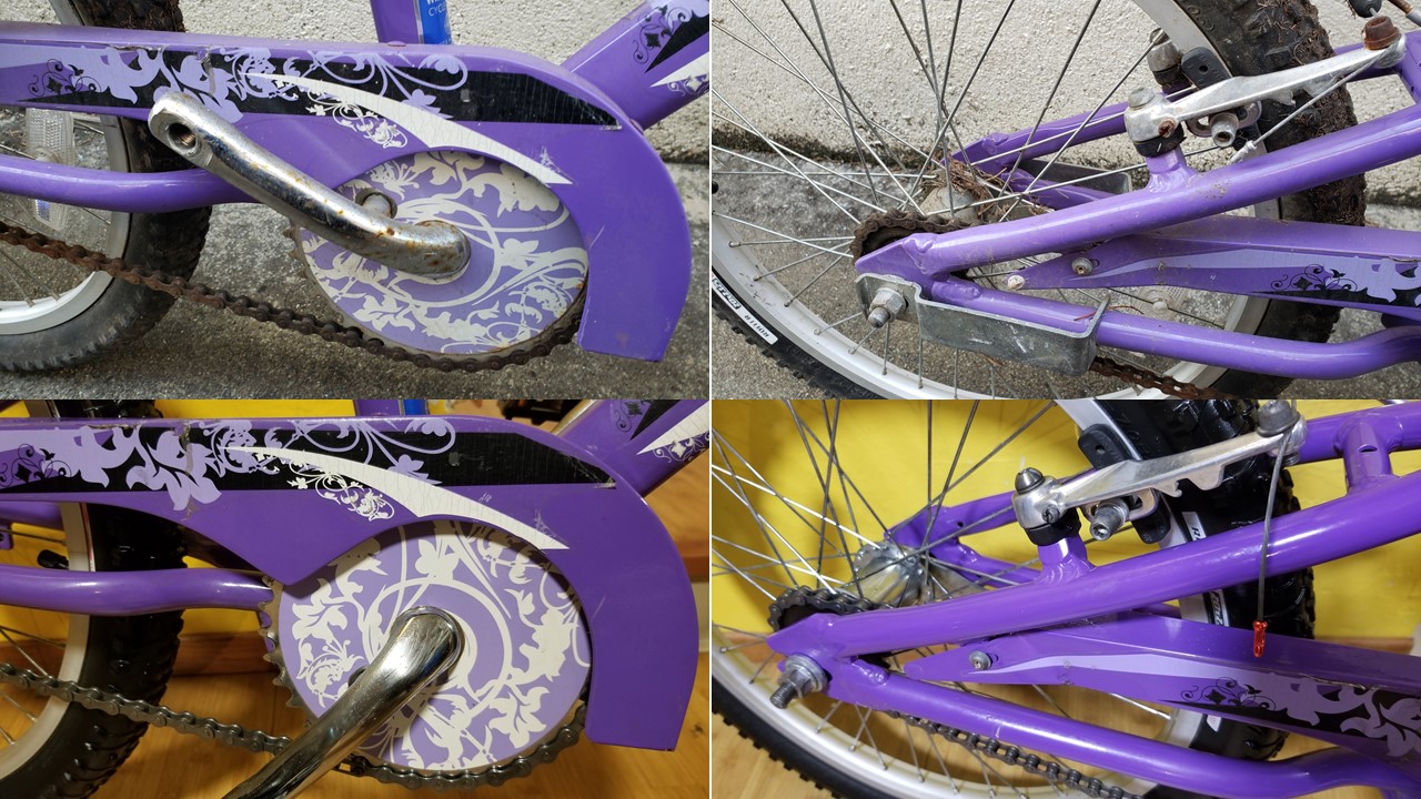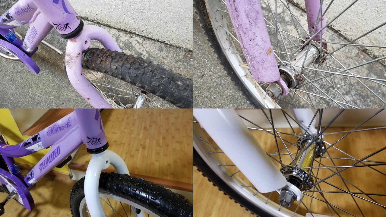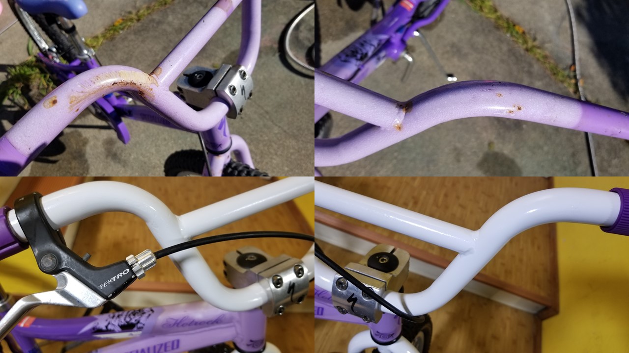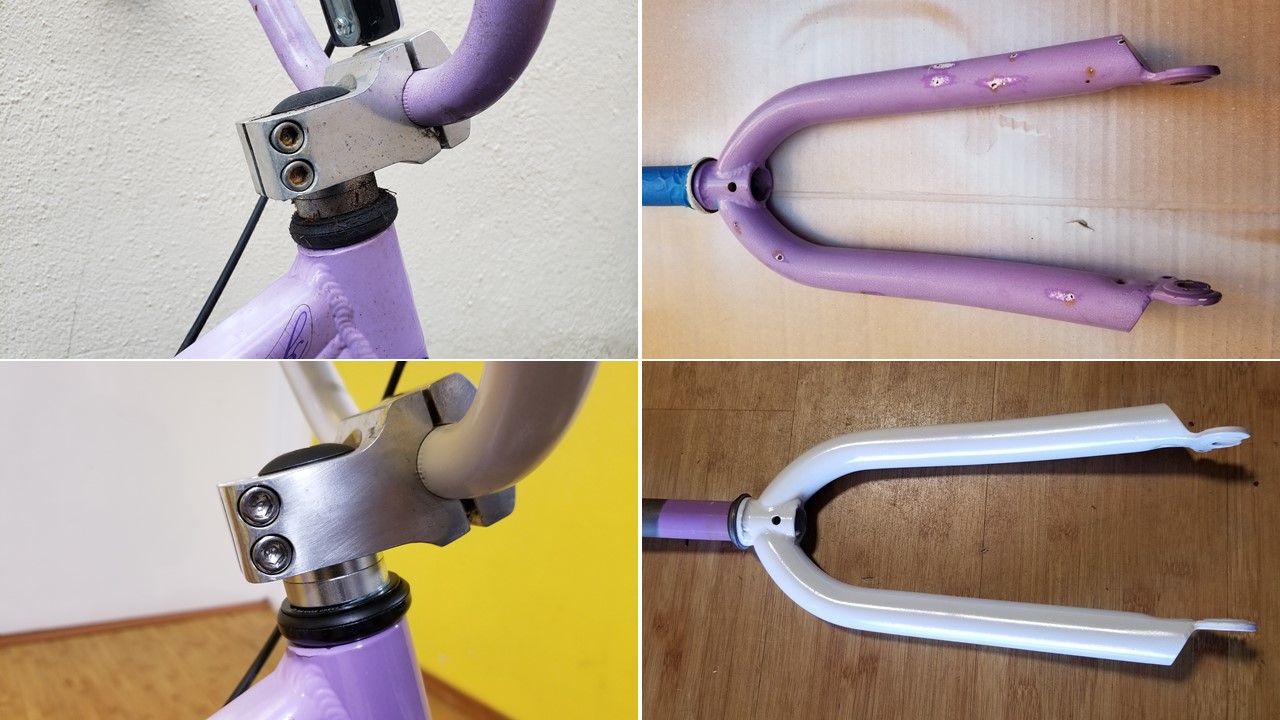 I got this bike with a badly rusted chain, badly scratched handlebars, and rust spots on the fork and handlebars. I deep-cleaned this bike, de-rusted all rusted components, repainted the handlebars and fork in gloss white, and installed a new saddle and handlebar grips.