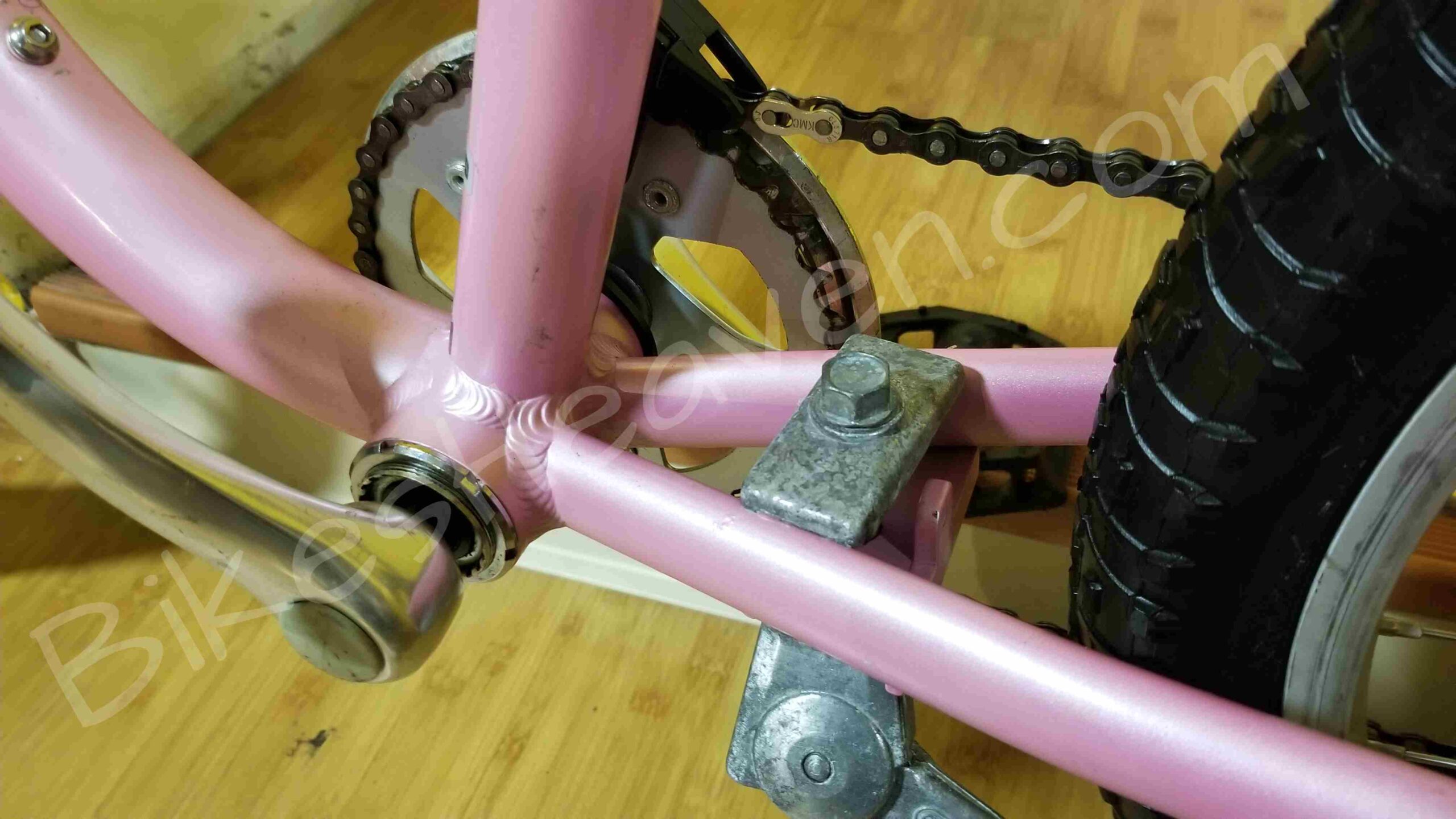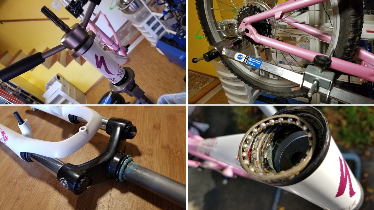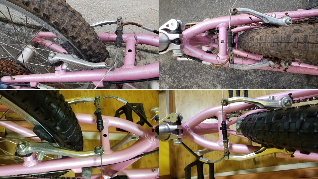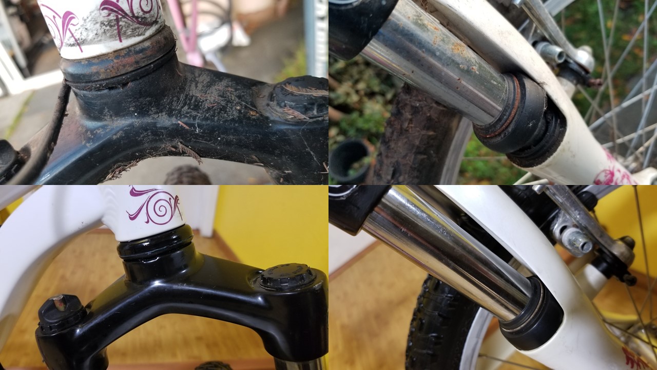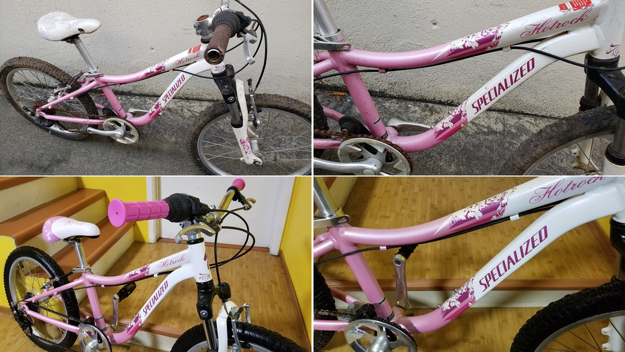I got this bike with a badly rusted chain, a crippled derailleur hanger, a broken chain roller, badly scratched handlebars, and rust spots on the steel fork. I deep-cleaned this bike, de-rusted components, and installed a new saddle, handlebar grips, and cables.